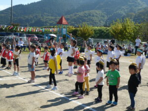 10月4日(土)はつやま杉の子こども園の運動会でした。今年は「虫」をテーマに好きな虫に仮装したり、かけっこや親子競技、障害物競走、遊戯、リレーなどを行いました。4・5歳児の表現はタオルを使った遊戯を披露し、一生懸命頑張る姿をお家の方々に見てもらうことができました。