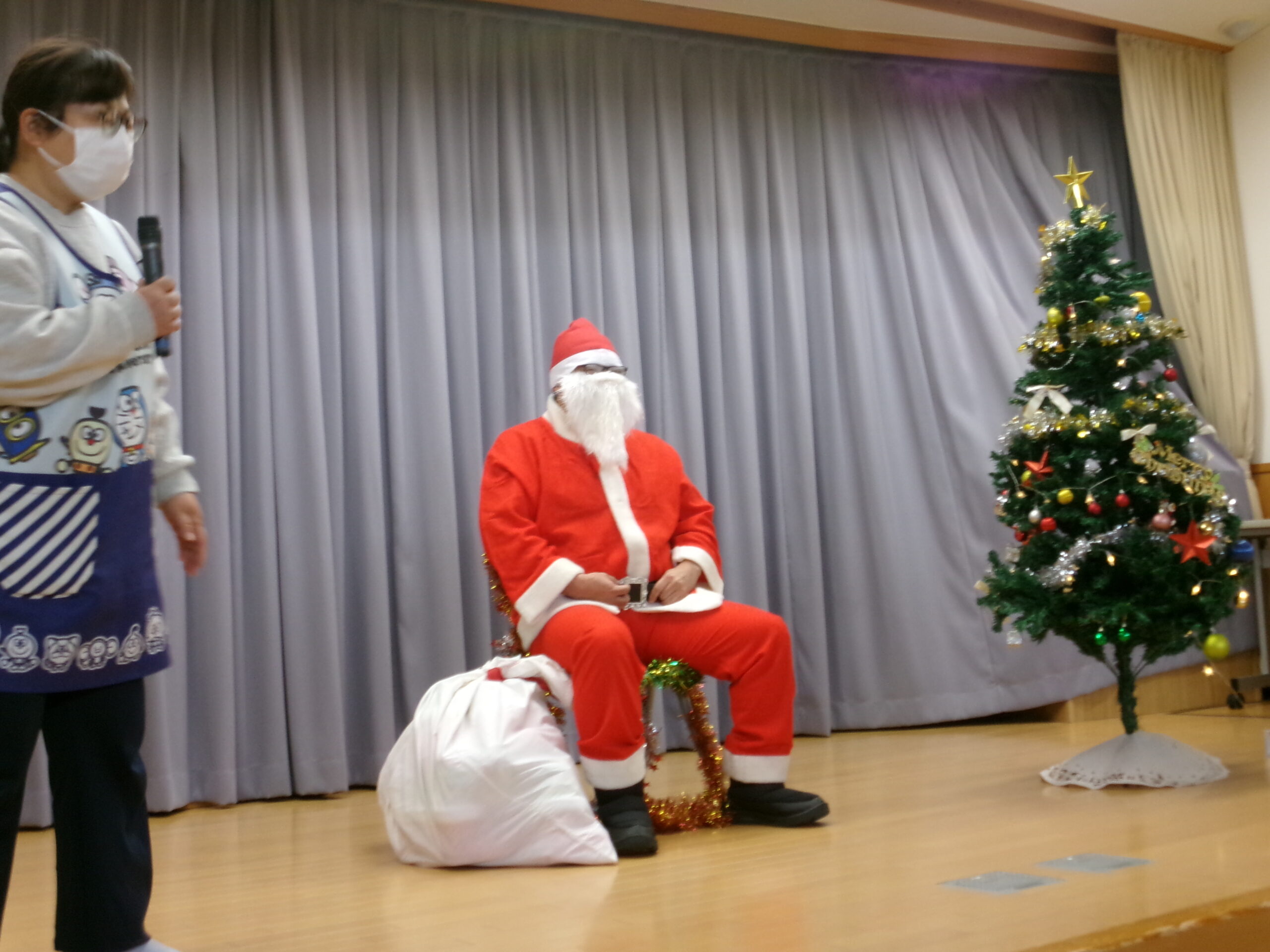 今年もやってきました!かおりちゃんによるお楽しみショー♪絵本の読み聞かせやマジック、南京玉すだれやパネルシアターなど盛りだくさんの内容で、みんなでたくさん笑いました!たくさん笑うと元気が出ますよね!今年も残りわずかとなりました。いっぱい笑って楽しく今年を締めくくりたいですね♪